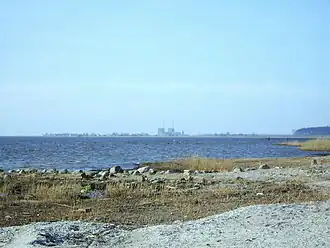 Vue des rives de l'Öresund à Barsebäck, avec la centrale au fond