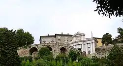 Il est vrai que les Colleoni avaient acquis un patrimoine immobilier considérable depuis la vallée du Brembo jusqu'à Isola de Bergame (aujourd'hui dans la commune de Pedrengo) et qu'il incluait, entre autres, l'importante position stratégique du castrum[7] de Baccanello à Calusco d'Adda, détruit en 1298 par les gibelins alors qu'il appartenait encore aux Colleoni.