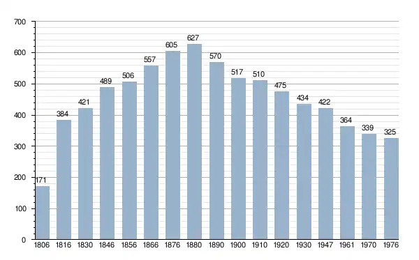 La population de Barvaux en Condroz a atteint son maximum en 1880 par 627 habitants. Elle était tombée à 325 habitants en 1976, l'année qui a précédé la fusion de la commune avec celle de Havelange.