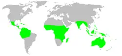 Les espèces de cette famille se rencontrent en Amérique, en Afrique, en Asie et en Océanie dans les régions tropicales et équatoriales[2].