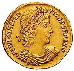 Malgré son jeune âge, Constant était un jeune homme ambitieux qui ne tarda pas à vouloir s’affranchir de la tutelle de son frère. Dès 339, il se révolta contre ce dernier[47], lequel marcha contre lui, traversant l’Italie avec ses troupes[48]. Il sera tué dans une embuscade aux environs d’Aquilée[48]. Constant prit alors le contrôle des territoires de son frère et il n’y eut plus que deux empereurs : Constance II en Orient et Constant en Occident.