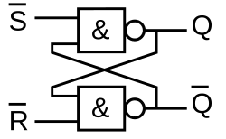 - ↑ Notamment pour des raisons internes à l'intégration des bascules/verrous dans des circuits intégrés optimaux, Q et non Q peuvent être dissociés sans que cela n’ait d'influence sur le mode de fonctionnement normal.