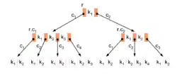 L'arbre B est une structure en arbre où toutes les branches ont la même longueur, et chaque nœud comporte entre N/2 et N branches. C'est une structure très souvent utilisée pour les index[13].