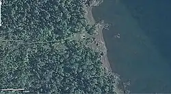 Vue de l'USGS des restes du site. Le petit édifice carré sur la plage représente tout ce qu'il reste du site (en 2013).