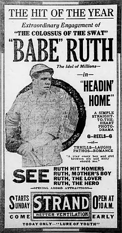 Des joueurs de Ligues majeures apparaissent parfois dans des films, liés ou pas au baseball. Cette pratique est très courante entre les deux Guerres mondiales dans la droite ligne des pratiques déjà en usage avant la Grande Guerre et l'apparition du cinéma avec des joueurs passant l'hiver à se produire dans des cabarets ou des pièces de théâtre. Ty Cobb apparaît ainsi en 1917 dans Somewhere in Georgia, Joe DiMaggio fait sa première apparition à l'écran en 1937 dans Manhatan Merry-go-Round tandis que Lou Gehrig joue dans un western de série B, Rawhide (1938)[2].