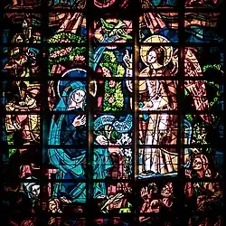 Illustrant les mystères de Marie dans l'histoire du salut, au cœur de la Trinité, les 14 grandes verrières sont l'œuvre des maîtres verriers, partenaires habituels Louis Barillet, Jacques Le Chevallier et Théo Hanssen. La mosaïque de la voûte au-dessus du maître autel vient clore la catéchèse développée dans les verrières de la nef. De chaque côté de la nef à mi-hauteur se déroule une frise sculptée monumentale, œuvre du sculpteur Jean Lambert-Rucki, qui est le Chemin de croix de la basilique. Les mosaïques du plafond sont l'œuvre de Marthe Flandrin.