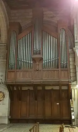 L'orgue de tribune inauguré en 1901 était l'œuvre de Joseph Gutschenritter, directeur de la manufacture Joseph Merklin. La Grande Guerre ayant anéanti la basilique, les orgues furent totalement détruites. Elles furent remplacées, en 1958, par un instrument construit par la maison Jacquot-Lavergne, avec réemploi de la tuyauterie de l'ancien orgue de chœur[8]. L'orgue est composé de 1 944 tuyaux en hêtre ou en alliage d'étain et de plomb.