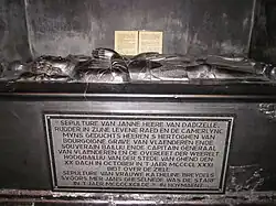 - Dans la crypte, sous le maître-autel repose le chevalier Jean de Dadizele (Jan van Veerdeghem) et son épouse, Catherine Breydel (XVe siècle). Son casque, ses gants de fer et éperons y sont conservés. Un autre seigneur de Dadizele repose dans la crypte: Ignace-Ferdinand de Croix. Tous deux, à des époques différentes, furent associés au développement du sanctuaire marial.