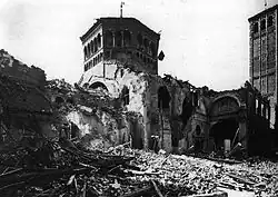 La basilique est durement touchée par les bombardements de Milan en 1943, qui détruisent principalement la partie externe de l'atrium, endommagent le dôme de la basilique, la mosaïque derrière l'autel et d'autres parties extérieures. Dans les années suivantes, les restaurations commencent, qui dans les années cinquante permettent à l'édifice de retrouver son ancienne splendeur[14] ; l'œuvre de Bramante est restaurée en 1955 et finalement achevée par Ferdinando Reggiori.