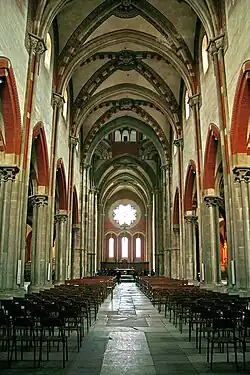 Les œuvres d'art comprennent le monument funéraire de l'abbé Thomas Gallus (début du XIVe siècle), avec une fresque de l'école lombarde. Dans la première chapelle de l'aile gauche du transept se trouve un crucifix peint du XVe siècle.