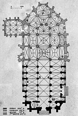 La façade orientée à l'Ouest et la nef datent du XIIIe siècle, l'entrée s'effectuant par le portail Saint-Jean situé au sud est typique du style gothique du XIVe siècle. Le chœur et le transept datent des XVe siècle et XVIe siècle.