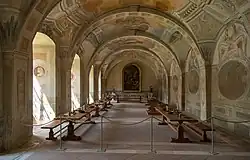 - le réfectoire d'été de style roman (avec une grande voûte en berceau), et ses fresques baroques,