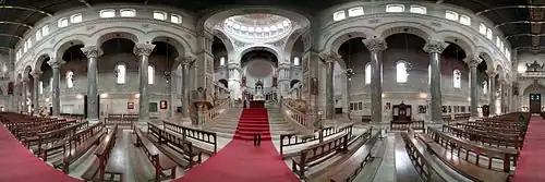 Les deux tours subsistantes furent classées monument historique en 1840, classement confirmé à l'Inventaire en 1858, puis en 1862. Le fervent catholique Léon Papin Dupont (avec l'aide du comte romain Pèdre Moisant et de Stanislas Ratel[22]) annonça la redécouverte du tombeau de Martin de Tours le [23], ce qui permit de rétablir le culte martinien et de relancer un projet de restitution du site grandiose. Le projet de l'architecte Alphonse Baillargé fit l'objet d'une longue et ardente controverse, ses partisans souhaitant un édifice à l'emplacement et avec les dimensions de l'ancien, ce qui supposait la suppression de la rue des Halles, importante artère commerciale de la ville percée après la démolition de 1802. L'écrivain René Boylesve fit de cet épisode de « la guerre des basiliques » l'argument principal de son roman Mademoiselle Cloque. Finalement un compromis fut trouvé en 1884 entre la municipalité et l'archevêché : le nouveau bâtiment, plus petit que l'ancien, lui serait perpendiculaire (orienté nord-sud) et ne partagerait avec lui que l'emplacement de l'ancien chevet, au-dessus du tombeau de saint Martin. Les travaux commencèrent en 1886, la crypte avec le tombeau fut inaugurée en 1889, l'église en 1890, et l'ensemble de la maçonnerie fut achevé en 1902, permettant d'ouvrir l'édifice au culte l'année suivante. Le cardinal Louis-Joseph Maurin consacra l'édifice comme basilique le , et l'aménagement du parvis fut terminé en 1928.