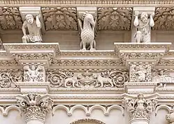 La basilique Sainte-Croix[1],[2] (italien : basilica di Santa Croce ; salentin : basilicōi de Santa Croce[3]) est une basilique de Lecce, dans les Pouilles en Italie, chef-d'œuvre de l'art baroque du XVIIe siècle. Œuvre des plus grands architectes de la ville, elle est, avec le palais du couvent des Célestins qui la jouxte, l'exemple le plus abouti du style particulier d'architecture baroque qui s'est développé au XVIIe siècle à Lecce et dans sa région, marqué par le foisonnement et l'exubérance du décor sculpté extérieur comme intérieur.