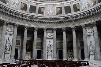 Au centre une rotonde de 34 m de diamètre est couverte par la coupole soutenue par 34 colonnes d'ordre corinthien hautes de 11 m avec des fûts en marbre de Mondragon, alternés de piliers.