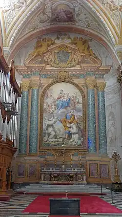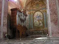Au creux de l'abside, caché par le maître-autel, se trouve un orgue à tuyaux, construit en 1913 par Giovanni Tamburini[53]. C'est un petit instrument avec un double compartiment sommier contrôlé par une console avec deux claviers de 58 notes chacun et un pédalier de 30. La transmission d'origine est pneumatique mais une entièrement électrique a été ajoutée.