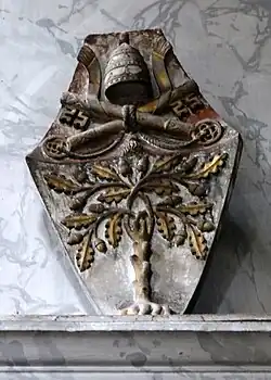 La reconstruction comporte également un message symbolique : le maléfique noyer de Néron est supplanté par le chêne bienfaisant des Della Rovere. Les armoiries papales sont placées sur la façade et les voûtes comme « symboles du bonheur éternel et de la protection contre la foudre », comme l'explique Landucci en louant la transposition des deux arbres[20]. Un autre aspect important de la reconstruction Sixtine est qu'elle fait de la basilique, la première église pour les pèlerins arrivant à Rome du Nord , un monument dynastique de la famille Della Rovere. Cela est renforcé par des proches du pape et d'autres personnages de sa cour qui achètent des chapelles et construisent des monuments funéraires. « Santa Maria del Popolo est devenue un lieu pour unir visuellement la domination universelle de l'église avec les della Rovere, un symbole totémique qui associerait les della Rovere à Rome et leur permettait de coopter sa magnificence et sa gloire », a affirmé Lisa Passaglia Bauman[21].
