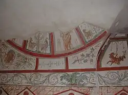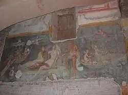 Une cour-nymphée montre une peinture murale représentant Proserpine entourée de putti à bord d'une embarcation, avec des traces d'une autre scène marine et de mosaïques sous les arcs des fenêtres. Plus tard, entre les IIIe et IVe siècles est créé une sorte d'oratoire qui présente des scènes à thèmes chrétiens ou décoratifs, parmi lesquels des génies ailés, des couronnes, des oiseaux. Puis une confession vient se greffer sur l'ensemble vers la fin de ces années-là, en bordure du Clivus Scauri, avec des sujets chrétiens et des scènes de martyres : décollations des saints Crispe, Crispinien et Benedicte, en plus de figures féminines et de celle d'un orant.