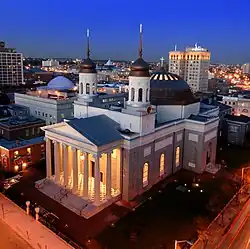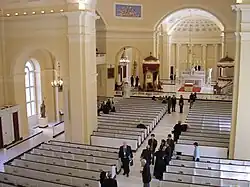 S'inspirant des édifices civils et religieux de l'antiquité gréco-romaine, la cathédrale est représentative du courant architectural néo-classique à la mode durant une partie du XIXe siècle. Basée sur un plan en forme de croix grecque, à l'instar de nombre d'églises paléochrétiennes européennes, elle se compose d'une nef divisée en trois vaisseaux, de croisillons peu saillants et d'une abside hémicylindrique intégrant colonnes ioniques, entablement et voûte à caissons. Un dôme couvre la croisée du transept. Le vaisseau central, éclairé par de larges baies en plein cintre, est couvert d'une série de dômes surbaissés accueillant des fresques représentant l'Ascension du Christ ou encore l'Assomption de la Vierge. En parallèle, les collatéraux sont couverts de berceaux transversaux.