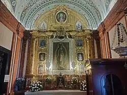 Une peinture de Notre-Dame de Guadalupe, sainte patronne de la ville de Mexico, œuvre de 1703 du peintre Joseph Mota, préside l'autel. Elle est offerte à la Confrérie par le père Feliciano Cortés, grand abbé de la basilique Notre-Dame-de-Guadalupe de Mexico. Les autres icônes sont celles de Notre-Dame de Coromoto, sainte patronne du Venezuela, la Vierge de Caacupé (es) (Paraguay), sainte Rose de Lima (Pérou), Notre-Dame de la Divine Providence (es) (Porto Rico), Notre-Dame de Luján (es) (Argentine), Notre-Dame de Chiquinquirá (Colombie), la Vierge du Quinche (es) (Équateur), Notre-Dame du Mont-Carmel (Chili) et Nuestra Señora de la Altagracia (République dominicaine).