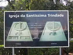 Pendant les deux premières années de construction, l'église de la Sainte-Trinité a été désignée GECA, pour Grande Espaço Coberto para Assembleias (Grand Espace Couvert pour les Assemblées), en raison de son importance relative[6],[7] (le bâtiment circulaire fait 125 m de diamètre).