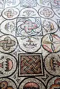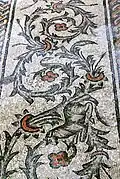 Découvert en 1909, après le retrait du revêtement en argile posé au XIe siècle à l’époque de Poppon, le sol en mosaïque polychrome, de 37 × 20 m, date du IVe siècle. En parfait état, il évoque, par ses motifs décoratifs, notamment des scènes bibliques[4],[5].