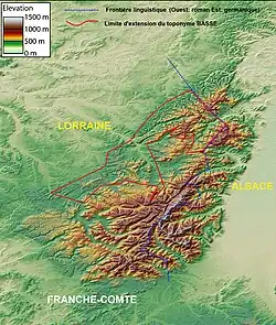 Limite occidentale du toponyme basse dans les Vosges
