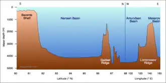 Le bassin d'Amundsen, avec des profondeurs allant jusqu'à 4,4 km, est la plaine abyssale la plus profonde de l'océan Arctique. Il est encadré par la dorsale de Lomonossov et la dorsale de Gakkel.