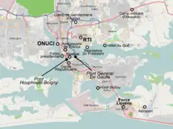 L'ambassade de France a subi une attaque dont les auteurs ont été neutralisés, trois gendarmes français ont été blessés[7]. Le siège de l'ONUCI a aussi subi une attaque qui a été stoppée dans le même temps.