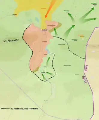 L'attaque commence le , lorsque deux kamikazes djihadistes se font exploser près de cibles militaires, tuant 14 soldats gouvernementaux. Le , de violents combats opposent les djihadistes aux forces gouvernementales. Les insurgés parviennent à prendre le contrôle de la majeure partie de la ville en 48 heures. Des dizaines d'employés de la compagnie pétrolière nationale syrienne sont tués dans les quartiers résidentiels de la ville par les islamistes[4]. Les troupes syriennes auraient cependant reçu des renforts depuis Hassaké, située plus au nord[5]. Le , après trois jours de combats, la ville est prise par le Front al-Nosra[2].