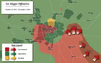 - Des 16 oct. et 10 nov. 2015 ► Offensive loyaliste à partir du secteur de Safirah (Sud-est Alep) en direction de l'aéroport de Kweires (Fin de siège)
