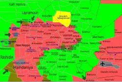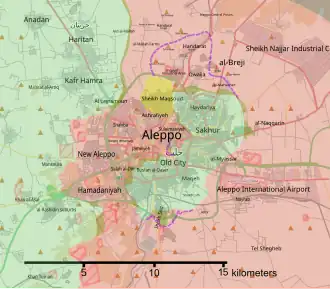 - Du 28 juillet 2016 ► Offensive loyaliste et kurde en vue d'effectuer une jonction complète entre zones de Cheik Maqsoud et Youth housing (Kurdes), et les zones de Tell Jabenja, ZI de Al Layramoun et la dernière zone conquise de Bani Zeid (loyalistes).