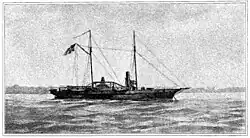 - ↑ http://www.history.navy.mil/research/histories/ship-histories/confederate_ships/appomattox.html . En 1862, le nom Appomatox n'avait encore comme référence que la ville, le comté ou la rivière Appomatox ; par contre ce nom sera honni par les sudistes après la reddition de Lee en 1865 à Appomatox Court House. Un énorme cargo de bois, long de 319 feet (97,2 m) fut lancé en 1896 sous le nom de SS Appomatox et parcourut les Grands Lacs jusqu'en 1905, date de son naufrage sur le lac Michigan