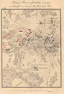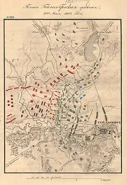 Le 11, leurs forces parviennent à déborder la droite de Bennigsen, qui ordonne le 12 l’abandon du camp retranché et le repli sur Friedland où se livre, le , la bataille décisive.