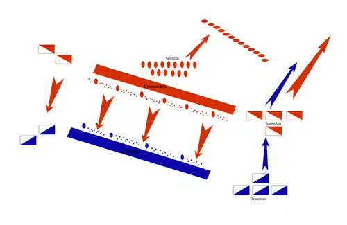 Plutarque est le seul auteur antique à fournir un déroulement précis de la bataille[4]. Il s'inspire ici de Hiéronymos de Cardia qui a probablement assisté à la défaite d'Antigone, son protecteur.