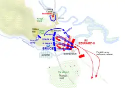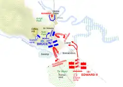 La bataille de Bannockburn est une écrasante victoire de l’armée écossaise menée par Robert Bruce sur les troupes anglaises dirigées par Édouard II d'Angleterre les 23 et pendant la première guerre d'indépendance écossaise. Elle est marquée par l'utilisation par Robert Bruce de carrés de piquiers nommés schiltrons sur lesquels vinrent s'écraser les charges de cavalerie anglaises[1]. Cette bataille entraîne une remise en question tactique de l'armée anglaise, ce qui aura un impact majeur sur les tactiques de combat de la guerre de Cent Ans.