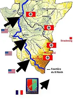 - ↑ Seventh Army History, Phase Three, The Drive Through the Vosges to the Rhine, p. 444-446, 472-476