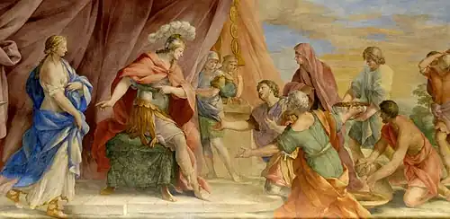 Pendant le pillage de la ville punique aurait eu lieu l'épisode connu comme La Clémence de Scipion, où, les soldats romains ayant présenté une princesse ibérique comme butin à leur général, le chef celtíbère, son fiancé Alucio, vint apporter une rançon pour sa libération. Voyant l'amour qu'ils éprouvaient l'un pour l'autre, Scipion les aurait pris en pitié et rendit la rançon, la consignant comme une dot pour leur mariage.