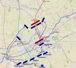 Sur ordre de Pichegru, Souham, qui s'est replié sur Aalbeke en fin de journée après la bataille de Willems, retourne sa division vers Courtrai[12]. Le 11 mai, Souham envoie les brigades Daendels et Winter renforcer Vandamme à Courtrai[13]. Pendant ce temps, Souham ordonne aux brigades Macdonald et Malbrancq de traverser la Lys à Menin, et de se diriger vers le nord-est contre Clerfayt[12].