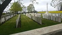 Vue du Post Office Rifles Cemetery, un cimetière militaire comportant les tombes de soldats britanniques ayant combattu lors de la bataille de Festubert.