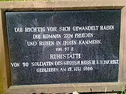 - ↑ s. Alexander von Hessen-Darmstadt: Feldzugs-Journal des Oberbefehlshabers des 8ten deutschen Bundes-Armee-Corps im Feldzuge des Jahres 1866 in Westdeutschland, Eduard Zernin, Darmstadt & Leipzig 1867, p. 39 online in der Google-Buchsuche