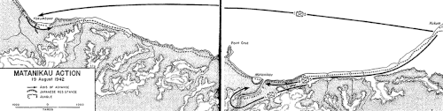 En réponse, le , Vandegrift envoya trois compagnies du 5e régiment de Marines attaquer les troupes japonaises concentrées à l'ouest de la Matanikau. Une compagnie lança son attaque en traversant le banc de sable de l'embouchure de la Matinakau tandis qu'une autre traversait la rivière, environ 1 000 m à l'intérieur des terres. Elles prirent d'assaut les troupes japonaises retranchées dans le village de Matanikau. La troisième, quant à elle, attaqua en venant de la mer, plus loin à l'ouest de la rivière, avec pour objectif le village de Kokumbuna. Après avoir brièvement occupé les deux villages, les trois compagnies de Marines se replièrent dans le périmètre de Lunga avec un bilan de soixante-cinq Japonais tués pour quatre Marines morts dans les combats. Cette opération, parfois qualifiée de « première bataille de Matanikau », fut la première des actions menées le long de la rivière Matanikau au cours de la campagne[57].