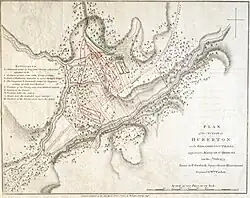 - ↑ À l'époque de la bataille, le territoire était revendiqué à la fois par New York et par la république du Vermont, qui avait déclaré son indépendance en janvier 1777, mais n'adopta ce nom que le 8 juillet, au lendemain de la bataille ; elle était connue préalablement sous le nom de Republic of New Connecticut.