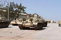 Un plan de destruction de la chaussée est présenté à Amin à Kampala, mais il le refuse afin de permettre à son armée de lancer une contre-offensive contre les Tanzaniens. Il pense qu'avec le soutien libyen, les Forces de défense du peuple tanzanien seront bientôt vaincues et qu'il est donc inutile de détruire puis de reconstruire la chaussée plus tard[9]. Du 2 au 4 mars, l'armée ougandaise arrête une attaque rebelle pendant la bataille de Tororo (en). La victoire à Tororo et les exhortations de ses commandants persuadent Idi Amin d'ordonner une contre-offensive[14]. Le 9 mars, plus d'un millier de soldats libyens[13] et une quarantaine de guérilleros de l'Organisation de libération de la Palestine appartenant au Fatah arrivent par avion en Ouganda[15], rejoignant les quelque 400 militants de l'OLP qui se trouvent déjà dans le pays[16]. La force libyenne comprenait des unités classiques, des sections des Forces armées libyennes et des membres de la Légion panafricaine[17][18]. Ils sont accompagnés de 15 chars T-55, d'une douzaine de véhicules blindés de transport de troupes, de plusieurs Land Rover équipés de canons sans recul M40, une douzaine de variantes de lance-roquettes Katioucha BM-21 Grad à 12 canons[13][19][17] et d'autres grosses pièces d'artillerie, telles que des mortiers de 122 mm[20] et deux batteries d'obusiers D-30[19]. Les forces de l'OLP sont commandées par le colonel Mutlaq Hamdan (connu sous le nom d'Abu Fawaz), le major Wassef Erekat, le capitaine Juma Hassan Hamdallah et le capitaine Ibrahim Awad[15].