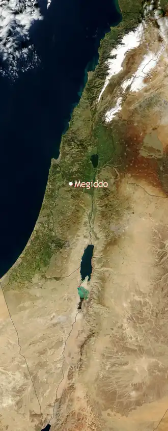 - Bataille de Megiddo (XVe siècle av. J.-C.) – entre les forces égyptiennes aux ordres du pharaon Thoutmôsis III et une coalition canaanéenne.