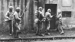 - ↑ Les pertes américaines, 55 hommes dans l’assaut final, sont dérisoires par rapport aux pertes allemandes, sans doute un bataillon entier.