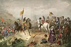 - ↑ Alexander Mikaberidze, Conflict and Conquest in the Islamic World: A Historical Encyclopedia, 2011, p. 590. "Was fought between the forces of Ottoman Sultan Mehmed IV, commanded by the Grand-Vizier Sari Süleyman Paşa, and the forces of Holy Roman Emperor Leopold I, commanded by Charles of Lorraine.