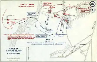 Scott propose d'attaquer d'abord le Molino dont la garnison est commandée par le général León. La division de Worth est renforcée par la brigade de Cadwallader de la division Pillow, trois escadrons de dragons sous les ordres du major Sumner, et quelques canons de siège commandés par le capitaine Huger, chargé de l'approvisionnement et le capitaine Drum du 4e d'artillerie.