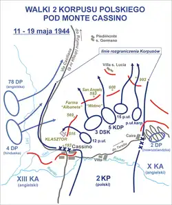 Débarqués en Sicile en , 50 000 soldats du 2e corps polonais du général Władysław Anders, sous le commandement du général Eisenhower ont participé à la campagne d'Italie. Alors que la progression des Alliés était arrêtée au pied du mont Cassin, ils prirent part de manière décisive à une bataille parmi les plus dures de toute la campagne d’Europe.