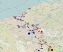 Après s'être emparée de Landrecies, la Coalition déploya des forces considérables dans la région, sans toutefois parvenir à les concentrer efficacement. Clerfayt fut ainsi dépêché au nord de Courtrai, le duc d'York à Marquain, non loin de Tournai, et d'autres contingents à l'est de Courtrai. La cavalerie hanovrienne remporta une victoire à Roulers le 4 mai, infligeant cent deux pertes à l'ennemi au prix de trois morts et vingt-sept blessés, et s'emparant de trois pièces d'artillerie. Le lendemain, une escarmouche indécise se déroula à Harelbeke, au cours de laquelle les troupes de Hesse-Darmstadt perdirent trois hommes et en eurent dix-huit de blessés. Les actions les plus notables de cette campagne furent sans conteste les batailles de Willems et de Courtrai, qui se déroulèrent du 10 au 12 mai 1794[9].